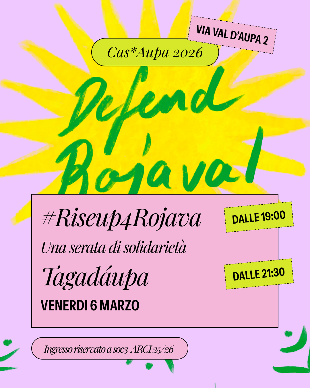 Venerdì 6 marzo a Cas*Aupa | #Riseup4Rojava | Tagadàupa